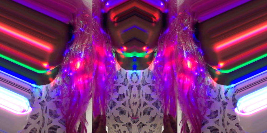 „Im ganzen Ausstellungsraum verteilt sind Monitore von FEG, einer AVATARA-Figur, die es in den Filmsequenzen irgendwie schafft sich selbst zu besuchen, dabei Beyoncé zu empfangen, die Ausstellungsbesucher zutextet und dabei mit dem Filmmaterial alle möglichen Mehrfachbelichtungen, Über- und Nebenblendungen ausführt. FEG eignet sich den gesamten Ausstellungsraum an, FEG lässt sich schwer in den Rahmen eines Bildschirms pressen, FEG schafft sich eigene Rahmungen innerhalb des Bildes, um sie sogleich umso verqueerter auch wieder zu verlassen. Im Versuch sich Women-of-Color-Strategien anzueignen, ihren leibhaftigen Verkörperungen zu begegnen und sich tanzend in den Strudel von Begehren und Selbstbehauptung zu werfen, wird hier in aller erster Linie Identität als eine vielfache, lückenhafte, aber in erster Linie performativ filmische Möglichkeit aufgeführt, die FEG sich ständig aneignet um sie abzustreifen. FEG ist eine fiktive Behauptung vielerlei Erscheinungen annehmen zu können, anstatt sich auf eine (filmische) festlegen zu müssen. Sex, Gender, Hautfarbe, Stimme, Körper, Zugehörigkeit wird hier als Kostüm an- und ausgezogen, bzw. lachend in den Abfluss der identitären Müllproduktion gegossen.“ (Ulf Aminde)